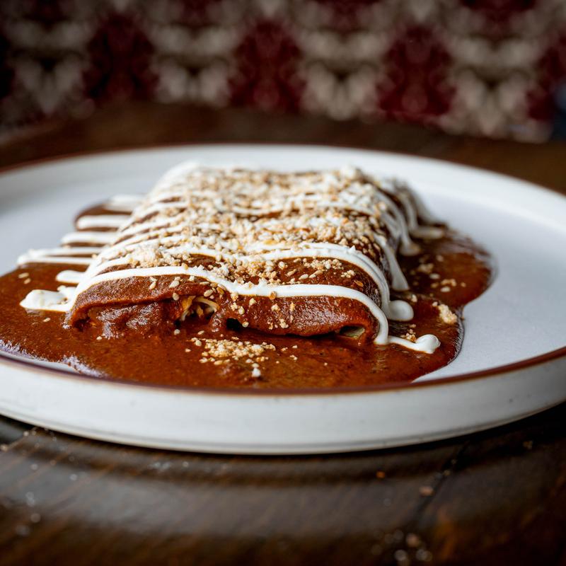 Served with crema & cheese, Mexican rice (VE) or lime-cilantro rice (VE), refried (VE) or black beans (VE) • Choice of: Chicken $23.00 | Shrimp $26.00 | Roasted Vegetables $23.00