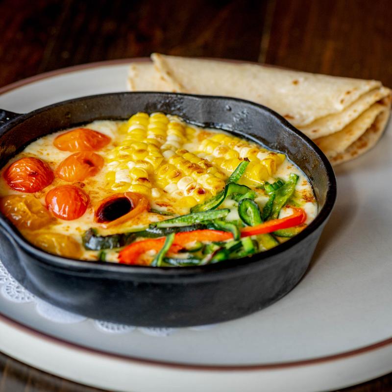 Sautéed zucchini, corn, poblanos, chayote, red bell pepper, cherry tomato, onion, chihuahua cheese